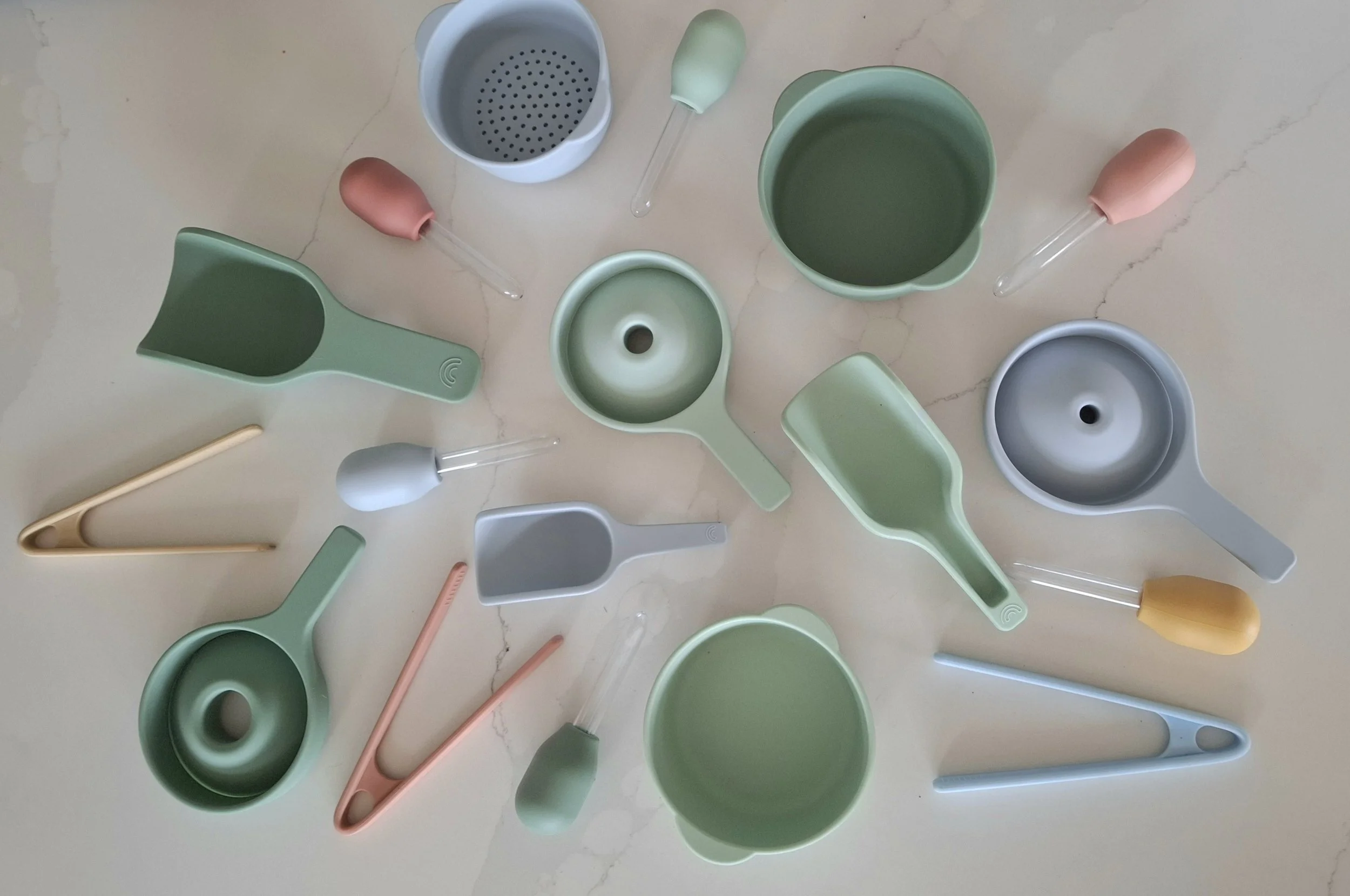 This is the ultimate sensory set up. The great thing about this giftbox is that it will see a child through their early years. The way in which the tools are used will change as the child develops and grows.